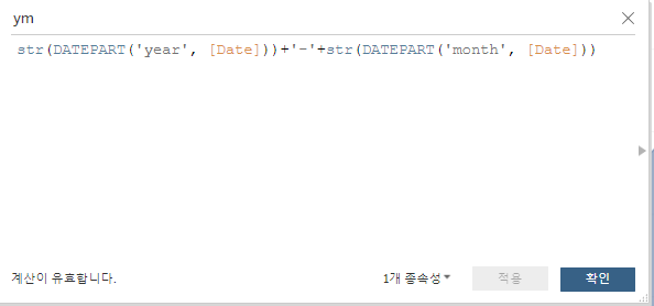 ① 날짜 필드에서 년월 정보만 추출하는 신규 필드 [ym] 생성