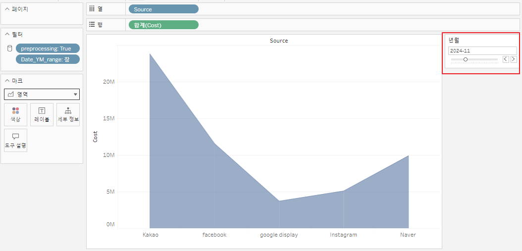 ③ 날짜 범위 [Date_YM_range]를 필터 추가하면 완성!