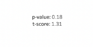 - p-value가 0.18로 임의 수준(0.05)보다 크므로 랜딩페이지 A안과 B안의 평균 전환율에 유의한 차이가 있다고 보기 어려움