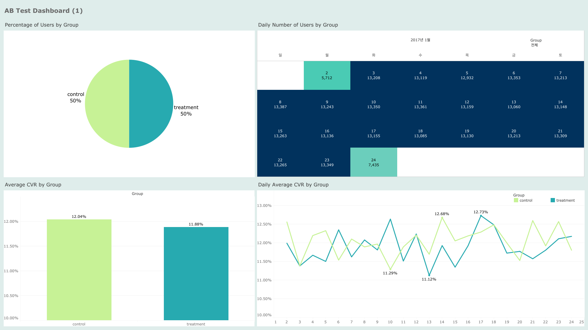 - 주제: 랜딩 페이지 A/B 테스트 대시보드 만들기