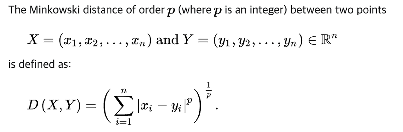 (참고) 📐 민코우스키 거리(Minkowski distnace)
