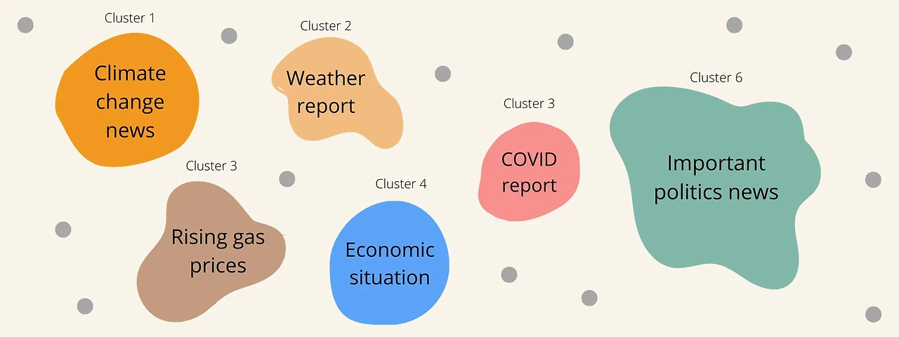 - (예시) 1년간의 뉴스 데이터를 클러스터링하여 그 해의 주요 뉴스 토픽 찾기 등