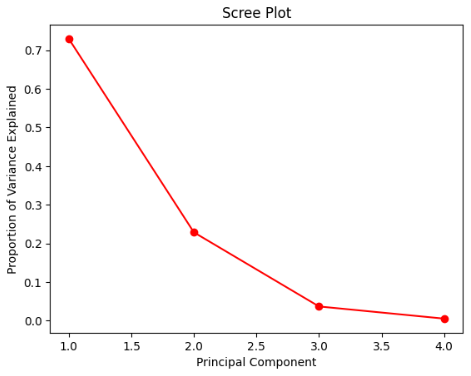 ④ 주성분이 데이터의 분산을 얼마나 반영하는지 확인하면서 적당한 수의 주성분을 선택합니다.