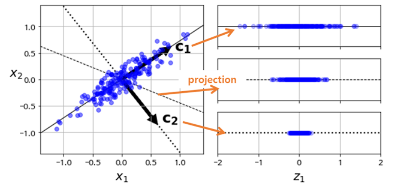 └ 하기 그래프에서는 C1선이 가장 데이터를 잘 담아내는 새로운 차원이 됨
