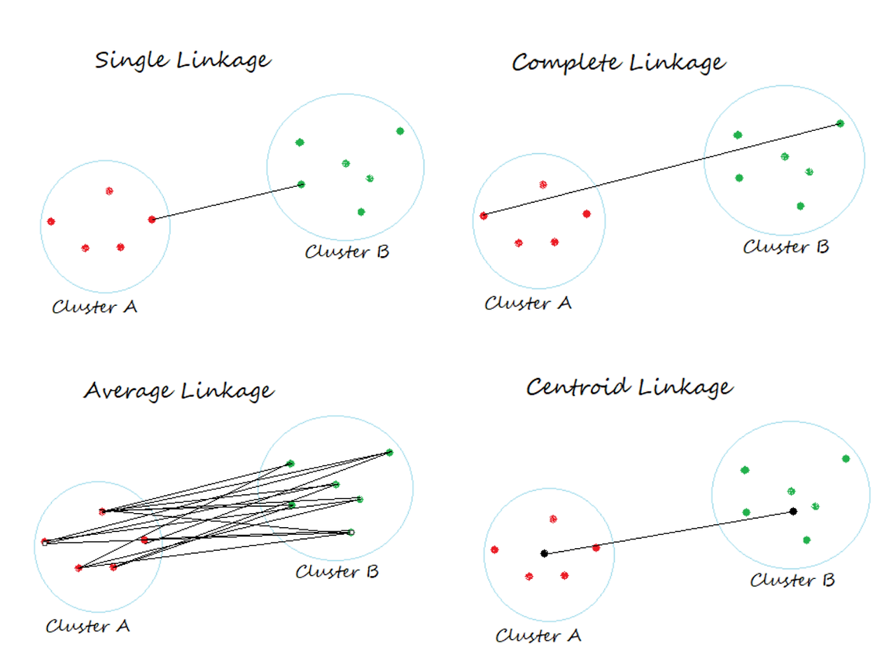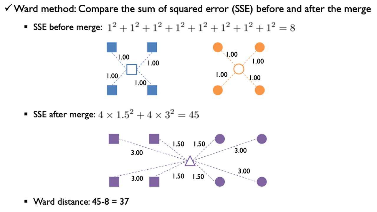 (5) Ward Linkage: 군집 전후 Centroid과 거리 제곱합의 차이를 이용
