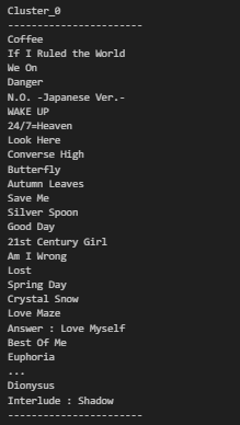 # 각 Cluster별 노래 제목을 한 번에 출력해주는 함수 생성