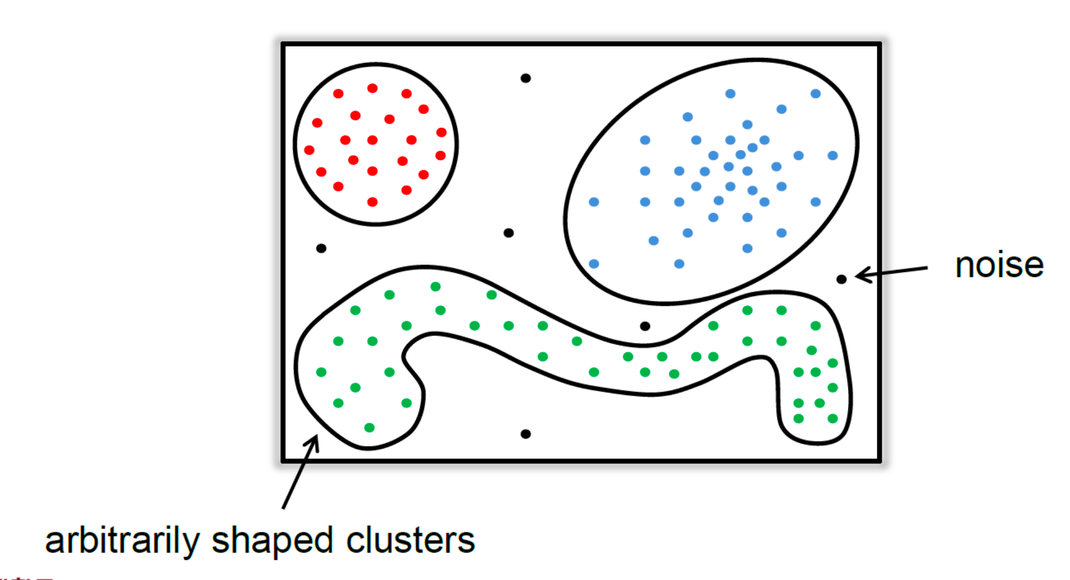 - Noise를 포함한 데이터에 대해 밀도 기반으로 클러스터링 하는 알고리즘