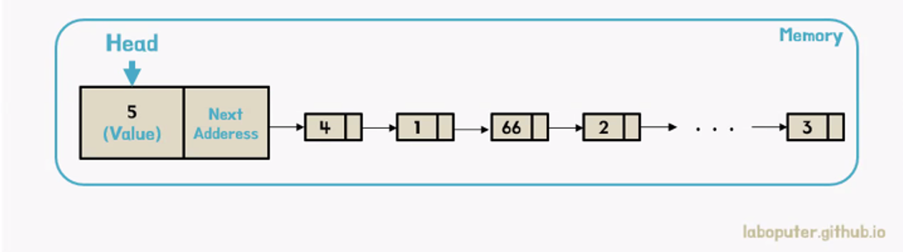 - 배열과 반대로, 데이터 추가/삭제 연산은 빠르지만 검색 연산은 느림