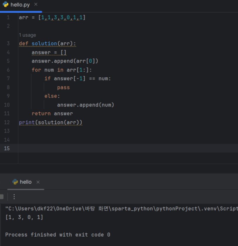 for num in arr[1:]: #첫 번째 숫자를 이미 answer에 넣어두었으니 두 번째부터 반복문 시작