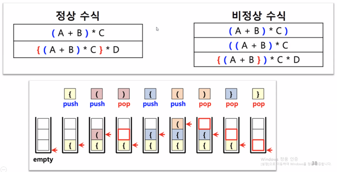 - 스택(Stack)은 먼저 들어온 값이 나중에 나가는 것. 들어오는 게 push, 빼는 게 pop (ex.프링글스)