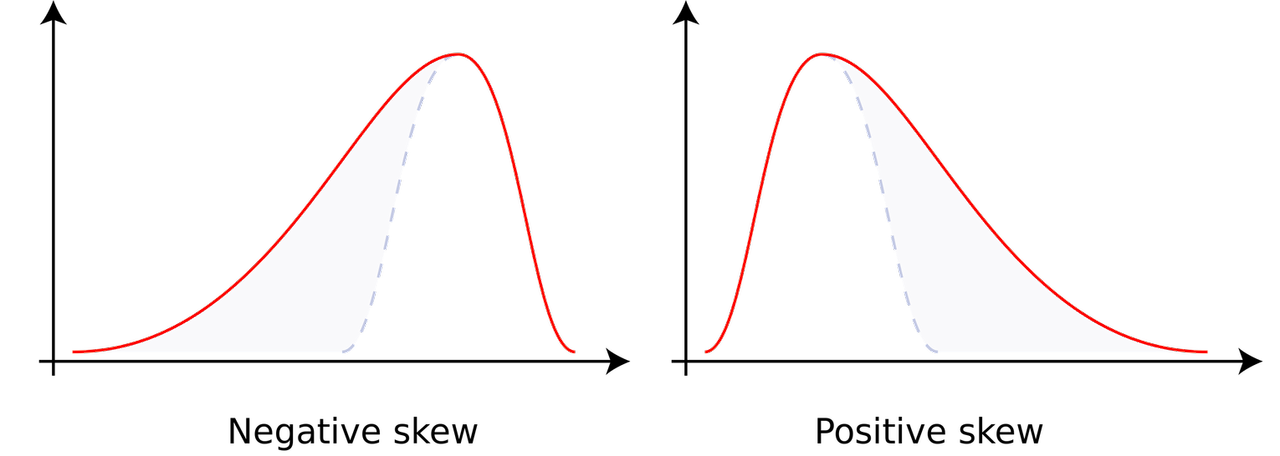 - 특정한 방향으로 데이터가 쏠려있는 것. 보통 꼬리tail를 당긴 것처럼 생겼다고 표현