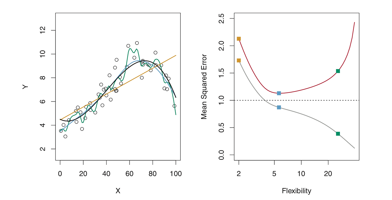 ③ 초록색 선은 모수가 늘고 모델의 복잡도(자유도)가 커지면서 생성된 선으로 노이즈까지 학습됨