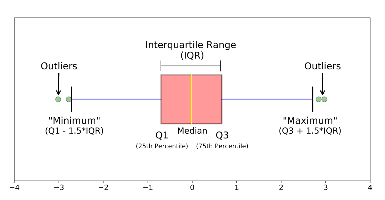 : 일반적으로 1.5배의 사분위 범위로 계산하며, 이 범위를 넘어가면 이상치(outlier)로 간주