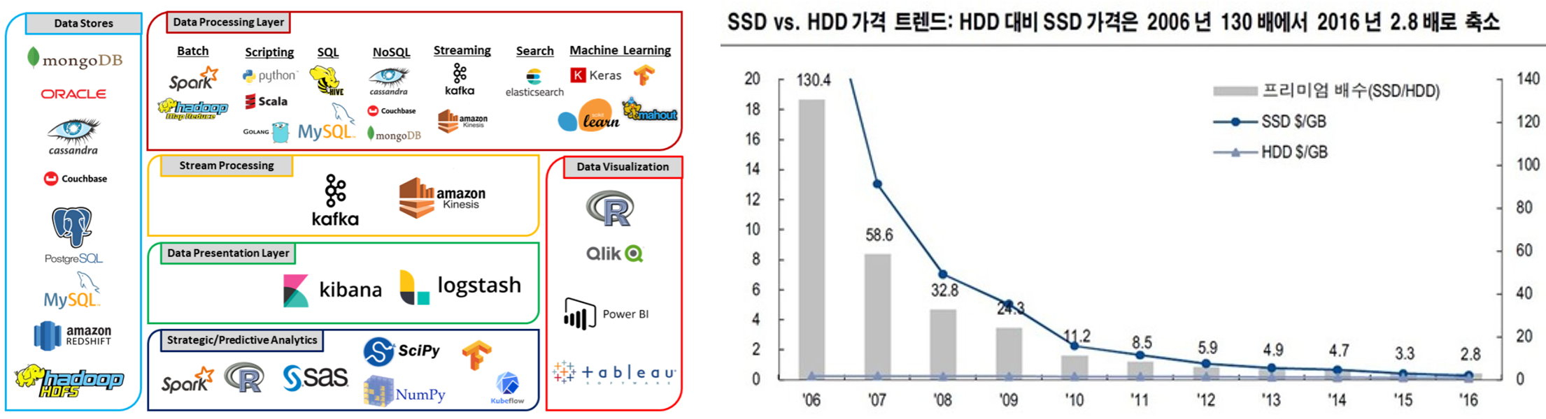 ② 데이터 처리 기술의 발전: 서비스가 많아지고, 저장매체의 가격 또한 하락하며 데이터 수집이 용이해짐