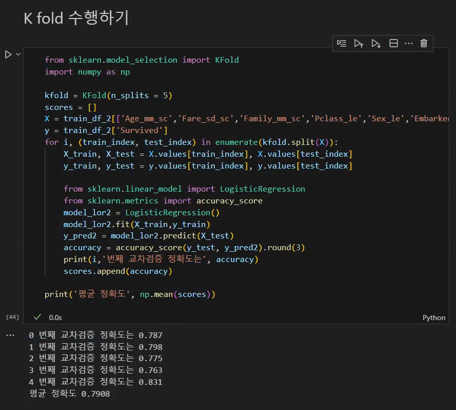 : 데이터 셋을 여러 개의 하위 집합으로 나누어 돌아가면서 검증 데이터로 사용하는 방법