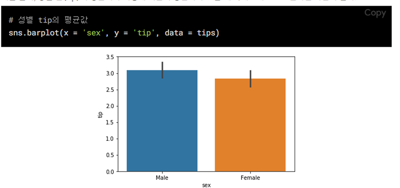 - 방법: 범주형의 데이터의 각 카테고리별 빈도수를 나타낼 때 ex. 제품 카테고리별 판매수 파악