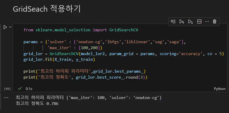 ▶ 하이퍼 파라미터 자동적용하기 - GridSearchV