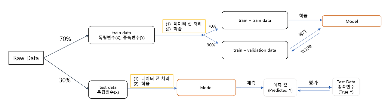 └ 학습 데이터(Train Data): 모델을 학습(fit)하기 위한 데이터
