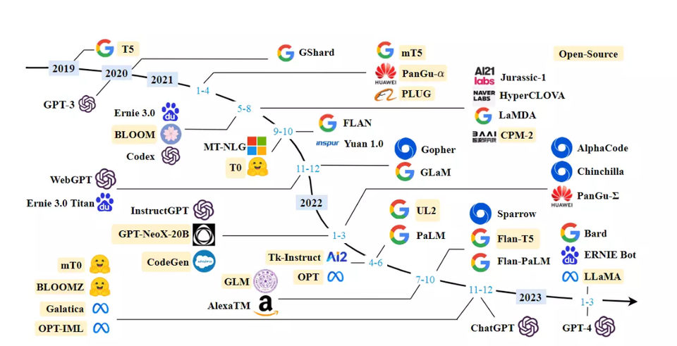 - LLM의 종류: GPT-4(OpenAI), PaLM2(Google), LlaMA(Meta)