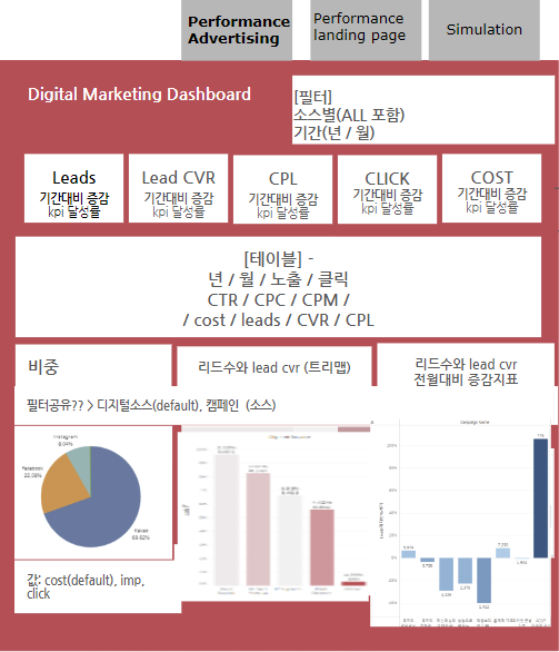 - 대시보드는 요약 / 광고타입-매체별 / 캠페인별 / 퍼널별로 나눠서 값을 상세히 보여주고자 함