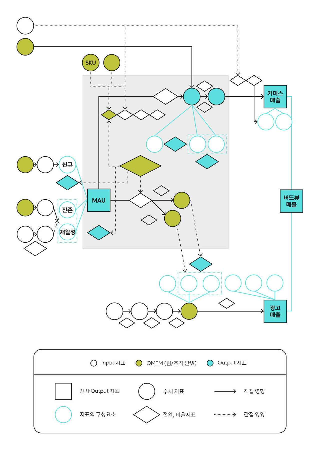 주요 지표에 집중해서 문제를 정의하고 해결할 수 있도록 인풋 지표는 ① 측정 가능하고 ② 직접 통제 가능해야 한다는 2가지 원칙도 설정했다.